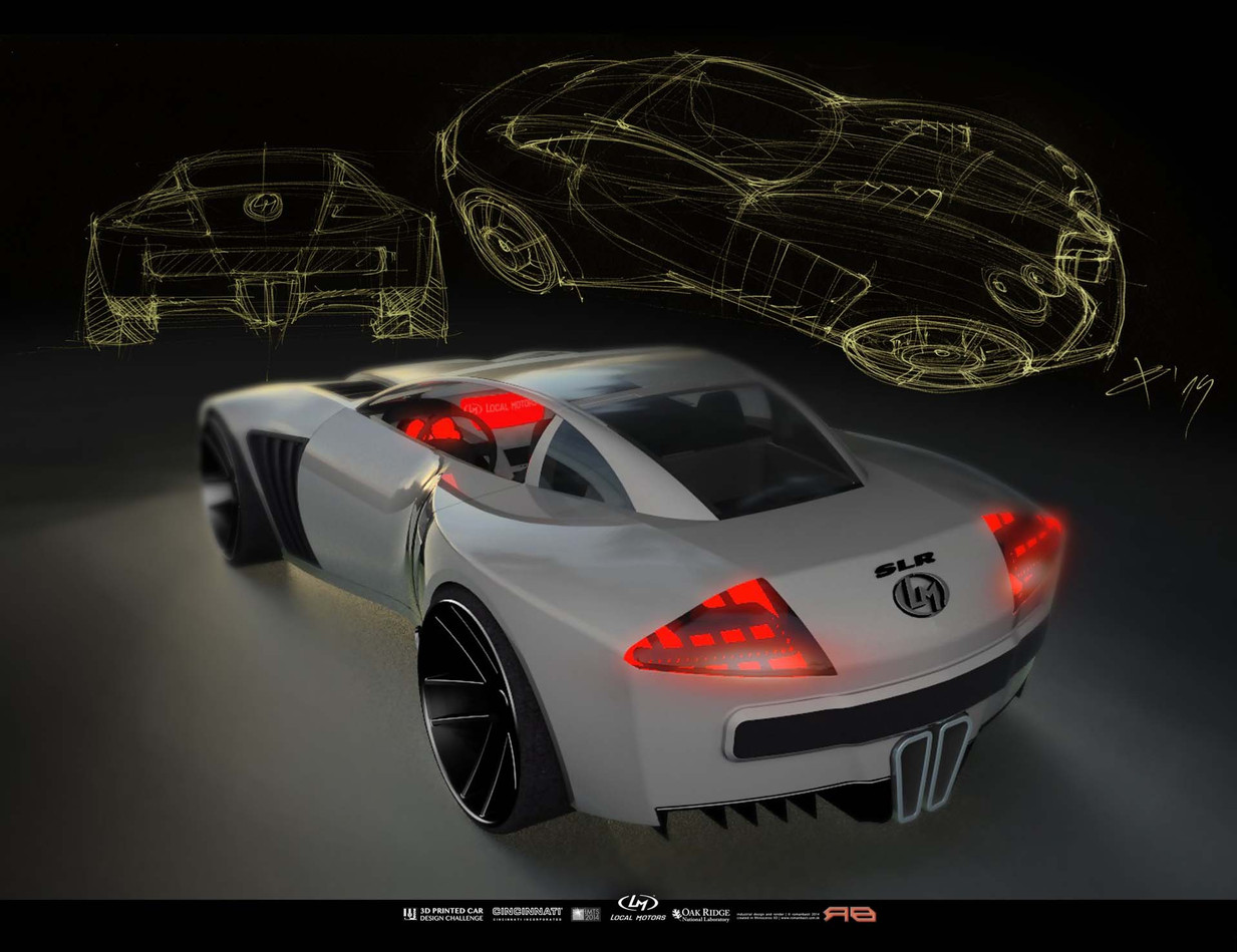 As they presented the goals of this design project, to be produced on 3Dpriner, to be fabricated in as few pieces as possible, I was following this goal. The main body includng seats is one piece. Basic cockpit, the Interior Trim, Dashboard and Seats structures have been blended into the overall shape creating a rigid one piece product will fit the frame. Sure the glossy surfaces will go trough milling process to get them nice glossy. Afterwards thay can be coloured. Some other little parts would be 3d printed separately. Primarily they are design details, so they could be cut out. Until The B pillar the height of the one piece carbon fiber carosery fits those needed parameters, sure maybe must be a bit rotated on the printer couse front running down a bit. Under evolution i had to cut out the optional roof and doors that you can see on some renders. Concept is fitting the 2 passenger seats package configuration. The RB_LocalMotorsSLR vehicle as I named it, has a shortened windshield. I`d rather prefer the version of doors opening upwards, but they are not inline with the design brief. Sure electricity power is environment friendly, and the batteries are in place. SLR is powered by huge petrol engine, but this concept flows by electric powertrain. Reviews proof that these are powerful. To understand, exhaust pipes are just cosmetic. The design is inspired by SLR VISION coupe by Mercedes. Hope you see those curves and details on the concept. I found it much interesting quite a tradicional vehicle to be fabricated using 3D printing process. So the concept takes advantage of new possibilities offered by direct digital manufacturing technique. 3D Logo in the center of hood is thou by LocalMotors Company. Joining the competition: https://launchforth.io/romanbasti/rb_localmotorsslr/overview/