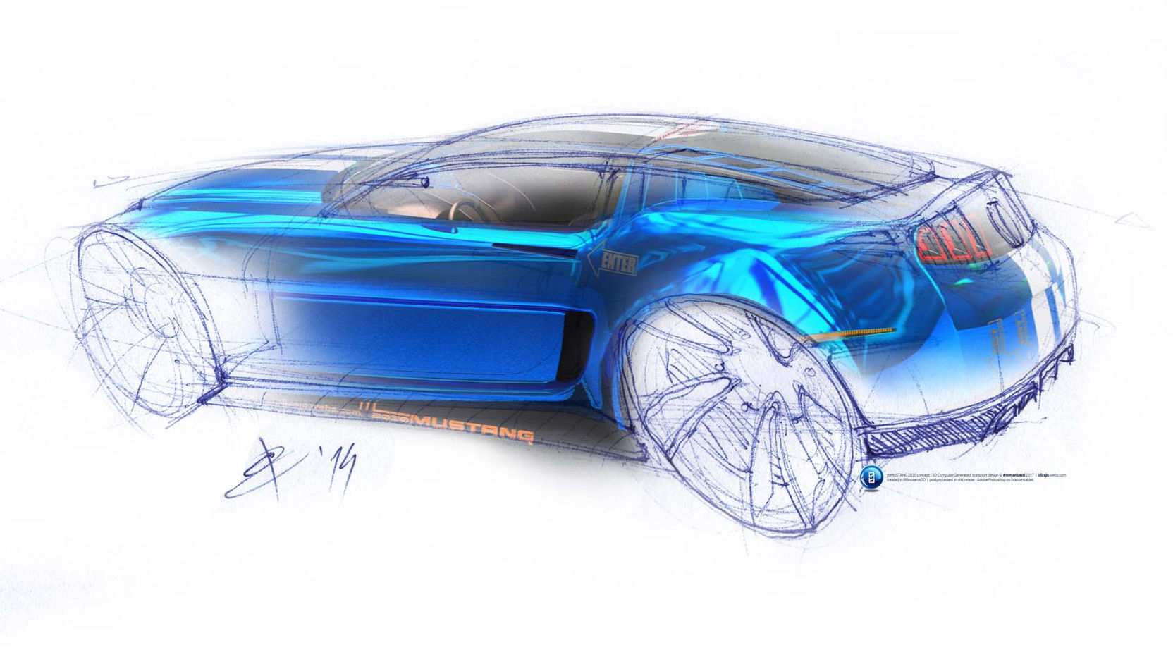 TheAs an Icon of car design i've chosen Ford Mustang to be mine Most Legendary Car. I am watching all the time, all different derivates of so called american muscle "Pony" car like Shelby Cobra, Dearborn Doll and for instance the newest hot 2015 model just came out of factory lines. But as an artistic view i placed my concept naturally redesigned into the year 2030 to demonstrate that we aim to see this legend to be produced so far. Background scene is taken from a well known Sci-Fi movie Blade Runner (1982), taken from internet, but as you see it is a 3D CG art and fits me well into my concept. Together it creates a great futuristic feeling. Design details are strongly and strictly continuing legendary 1968's predecessor. Starting on front most outstnading details are two air intake holes copying front end of the bonnet and are as thin and subtile as possible nevertheless showing the power of a futuristic 2030 engine machinery. Another interesting part is a front spoiler giving as much downforce as possible needs to be supported with alluminium mounts. Front grill with a nice big Horse logo on it is copying nowadays brand design language being hexagonal. Thin headlights being a single continuous shape with the top front grill opening are edged by led notches from inside exactly the same as on 68's just made by LEDlight design. Sure trendy LED ring andgel eyes must be. High beams should be laser, how else. Forward leaning front end reminding of a fist punching out is present too. Quite opaque fog lights by size are nicely framed by air intakes on botom of a front bumper. Brakes must be cooled, yap. Damn wide side skirts are made of carbonfiber same as front spiler and back diffuzer. Mustang2030 writing and my webpage ad are orange shined by LED on it. Cola bottle-like bodyside is preserved. Rear fender is highlighted by strong haunches. Fastback roof is defined by carbon A and C pillars and fringed with stripes of a bodywork colour. Side glass is continuous to a gills-look intakes same colour as body again. From the front end completely to back downforce integrated spoiler goes dual white stripes, natural to Mustang Shelby Cobra cars. Camera side mirrors inspired by aircraft are placed almost at the rooftop reminding of wings. Nice car door handles are oblong triangle grooves. Side airintake top edge is a continuous line connected to front and back LED orange sidelamps showing car edges. 24 Inch concave five doublespoke rims made of ulralight alluminium III are Standard equipment. Rooftop is fringed by lamborghini-style polygonal air intakes five on each side. Brake light roof opening is also polygonal similar to stealth technology known from F22/35 jets. Under the edge of integrated rear spoiler is again an thin continuous shape with integrated tri-bar taillamps. The're polygonal shape exactly copying the black rear continuous shape and vlisted inside, similar to 2010-model ones. SHELBY FORD named emblem being centered to this shape is huge by size and horse statue is present too. Rear black part edges are leaning tangentially downward through bumper and end in the diffuser edges. Integrated racing-inspired diffuser accommodates double tailpipes on eachside as it goes on a right sports car. The airintake top-edge continuous line connected to front and back LED orange sidelamps showing car edges can be seen also from backview. Joining the competition: http://humster3d.com/2014/11/26/ford-mustang-2030-concept/ My personal Tribute to Carroll Shelby: http://www.themustangnews.com/content/2013/01/carroll-shelby-2013-gt-500-cobra-tribute-to-sell-at-barrett-jackson/#.VKle5yuG98E at-barrett-jackson/#.VKle5yuG98E
